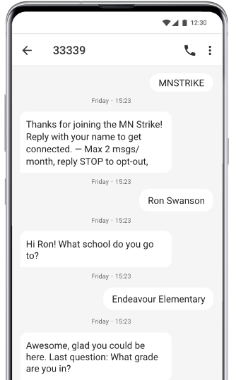 For example, when someone opts-in to your SMS list, you can create an automated text message flow to get personal and cause-relevant details from them. Here’s an example of how 350.org collected some details when people signed up to join their campaign.